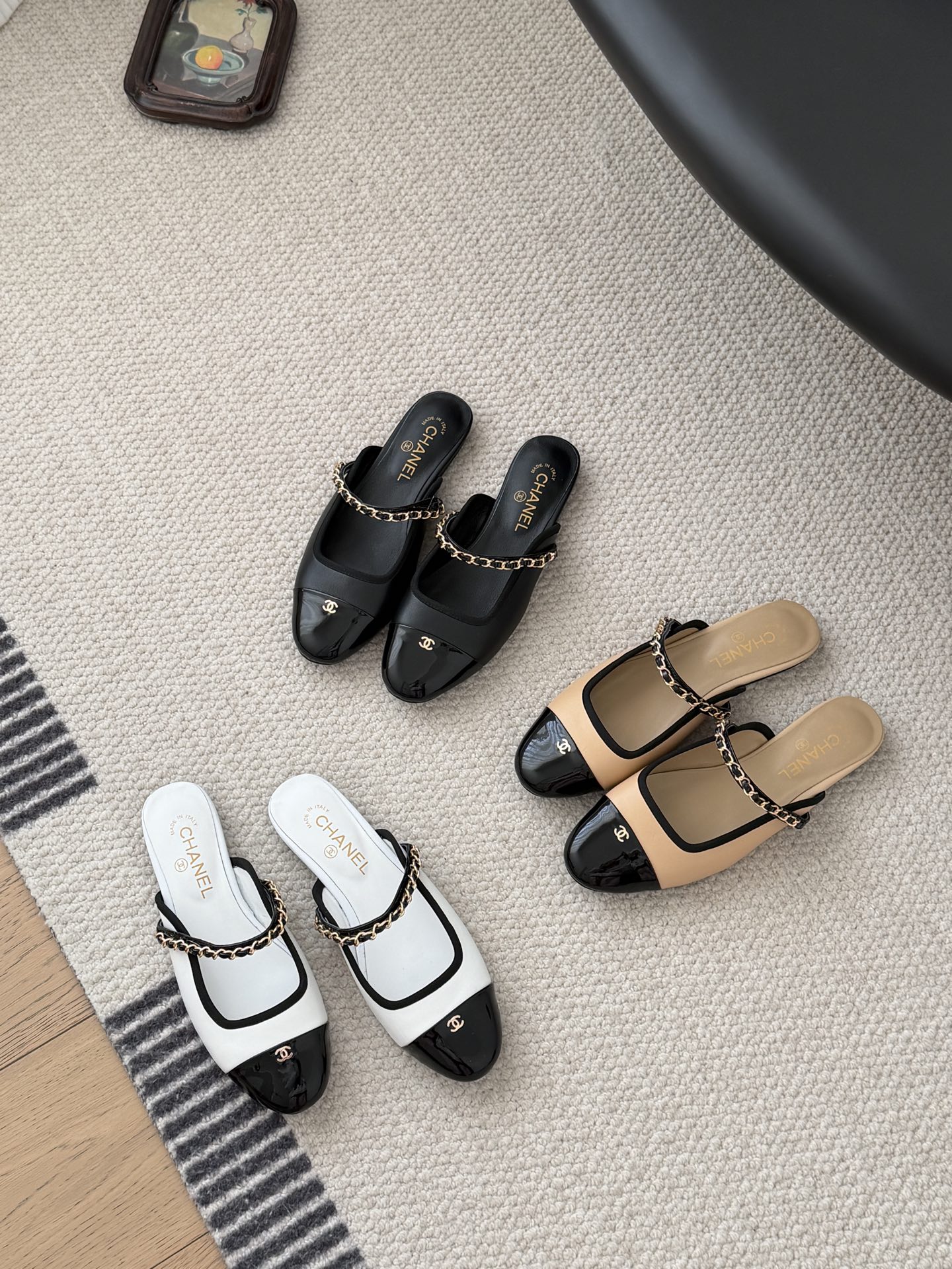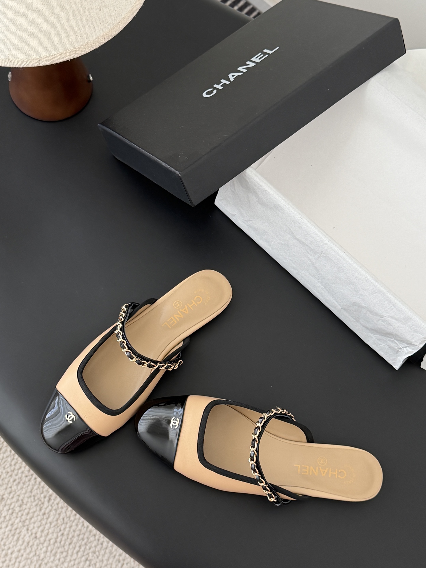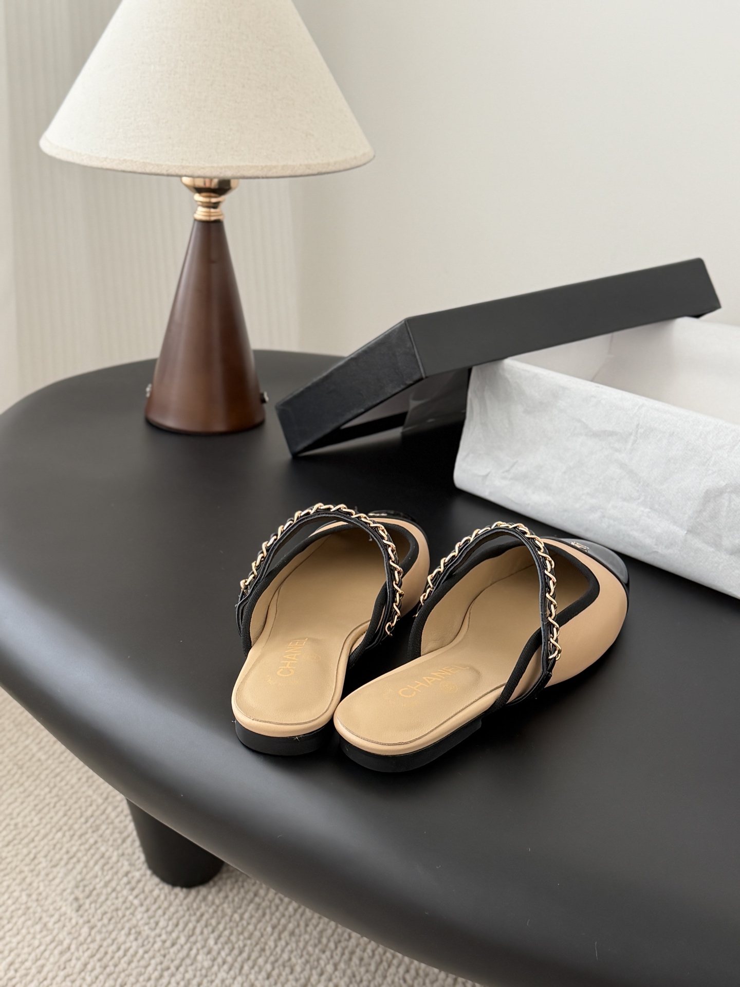 Chanel 25B 샤넬 체인 마리제인 슬링백 플랫 샌들 슈즈 신발