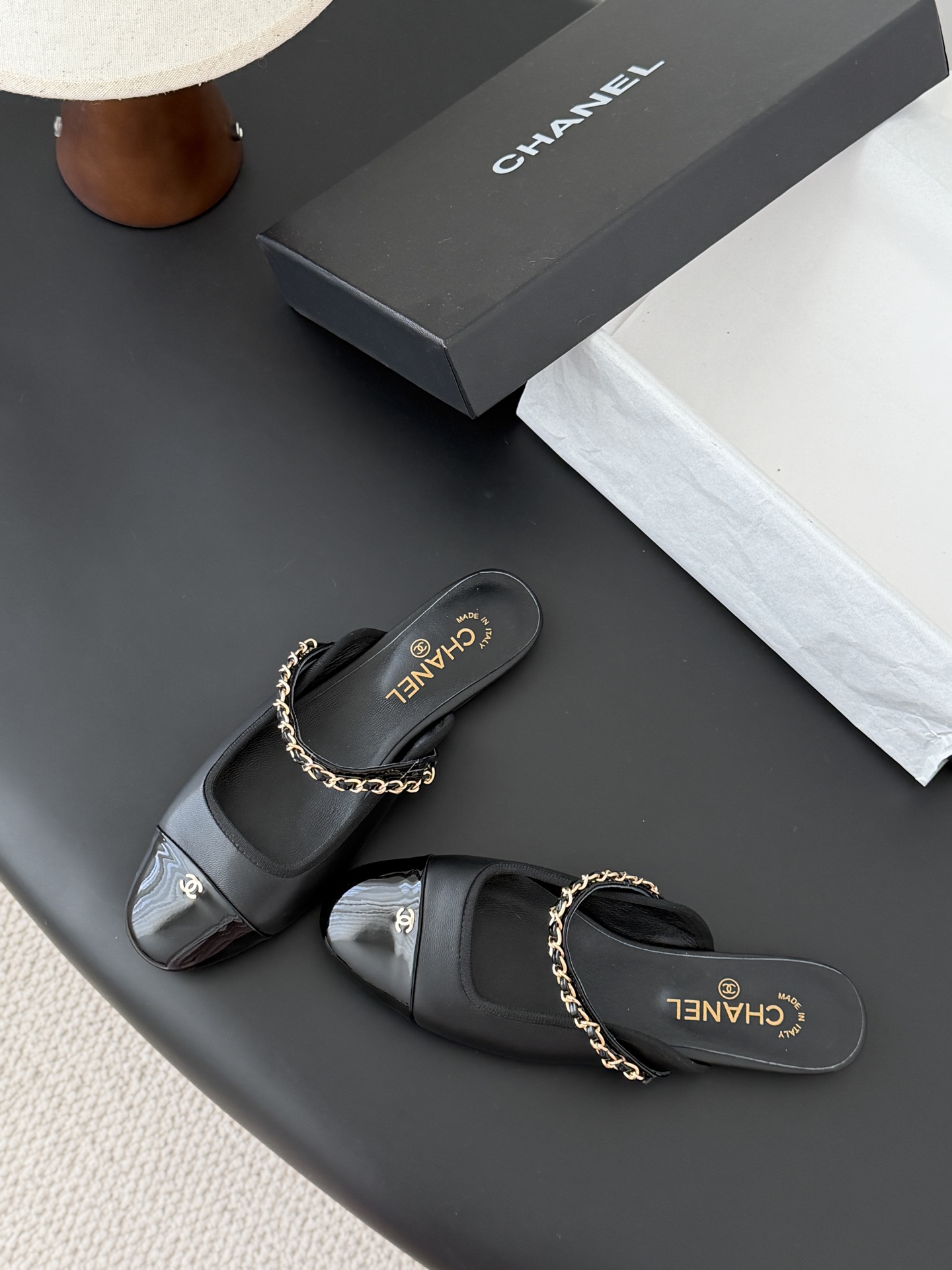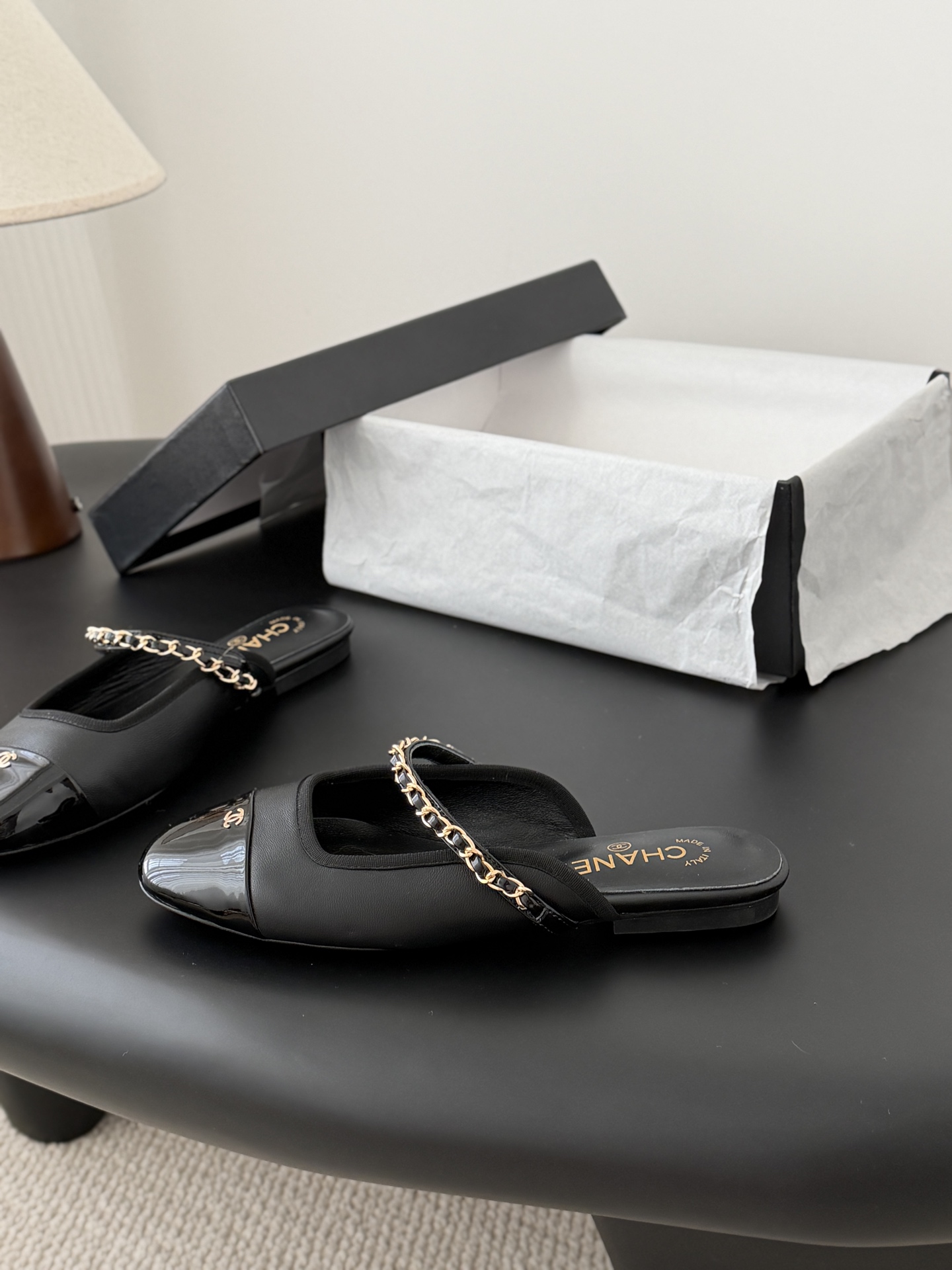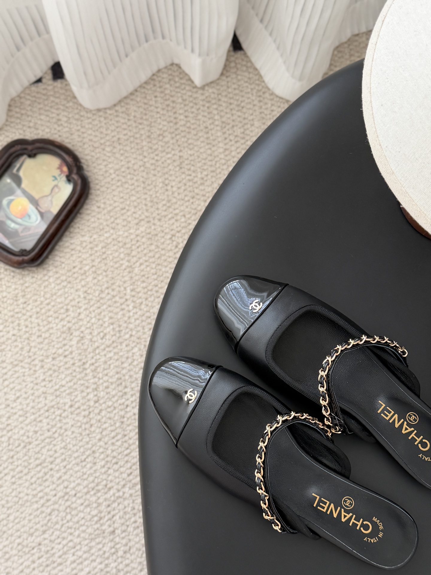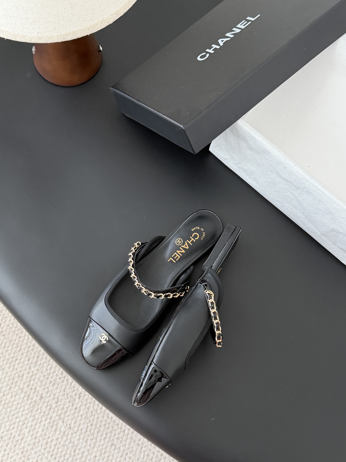 Chanel 25B 샤넬 체인 마리제인 슬링백 플랫 샌들 슈즈 신발