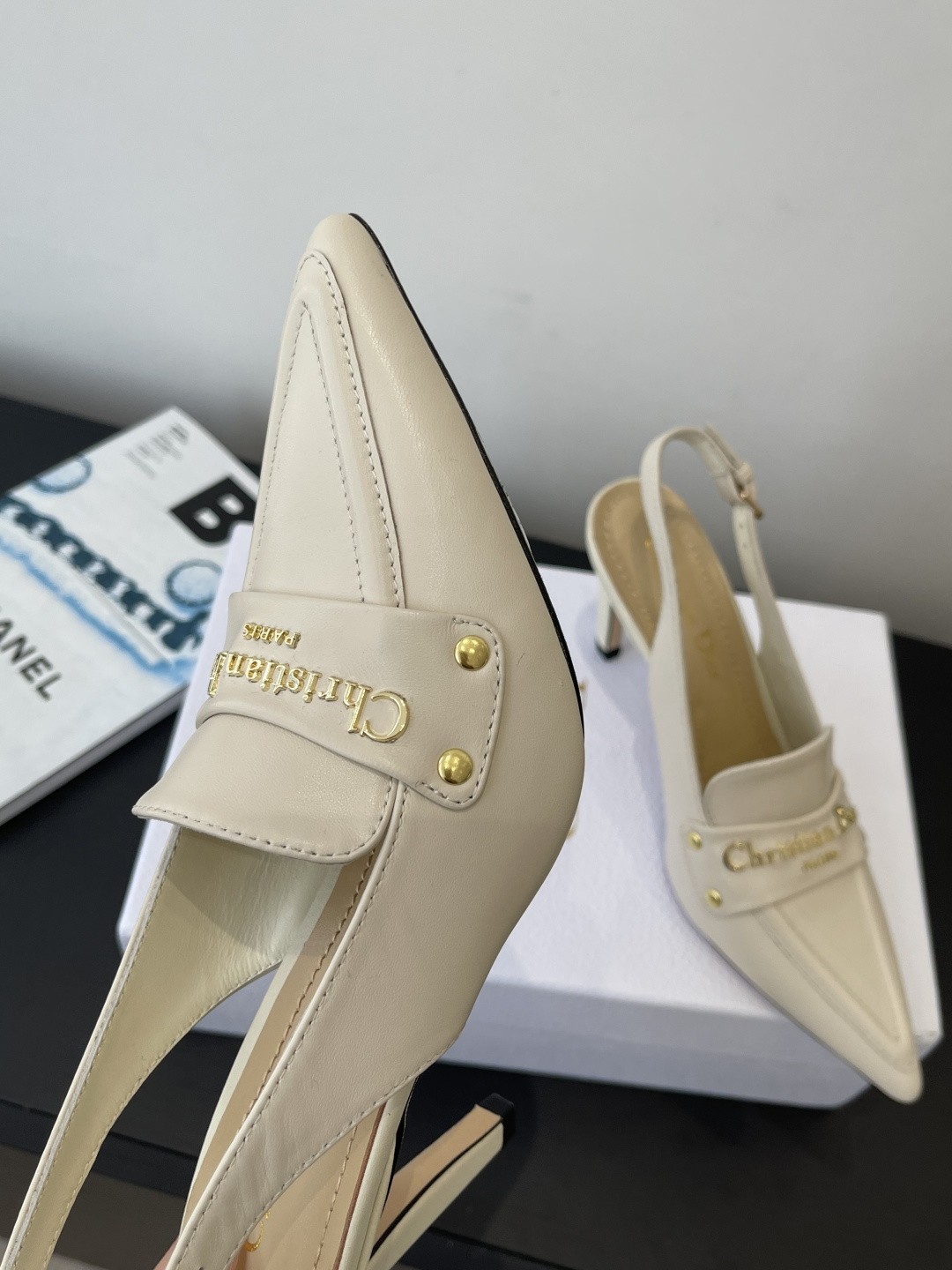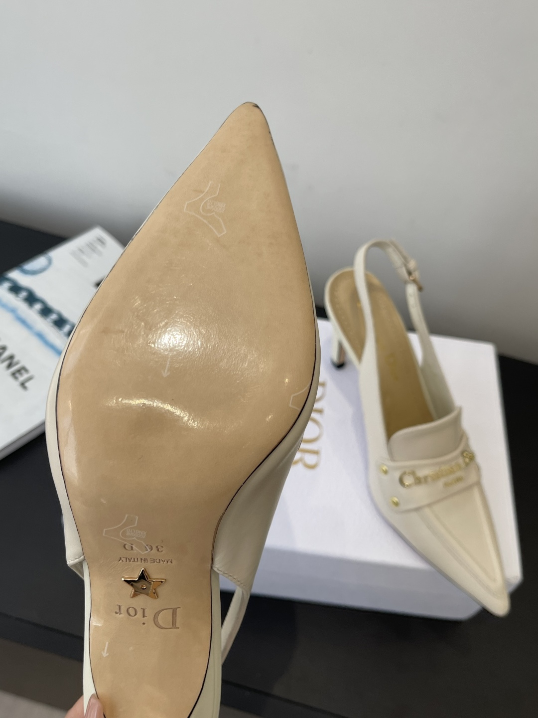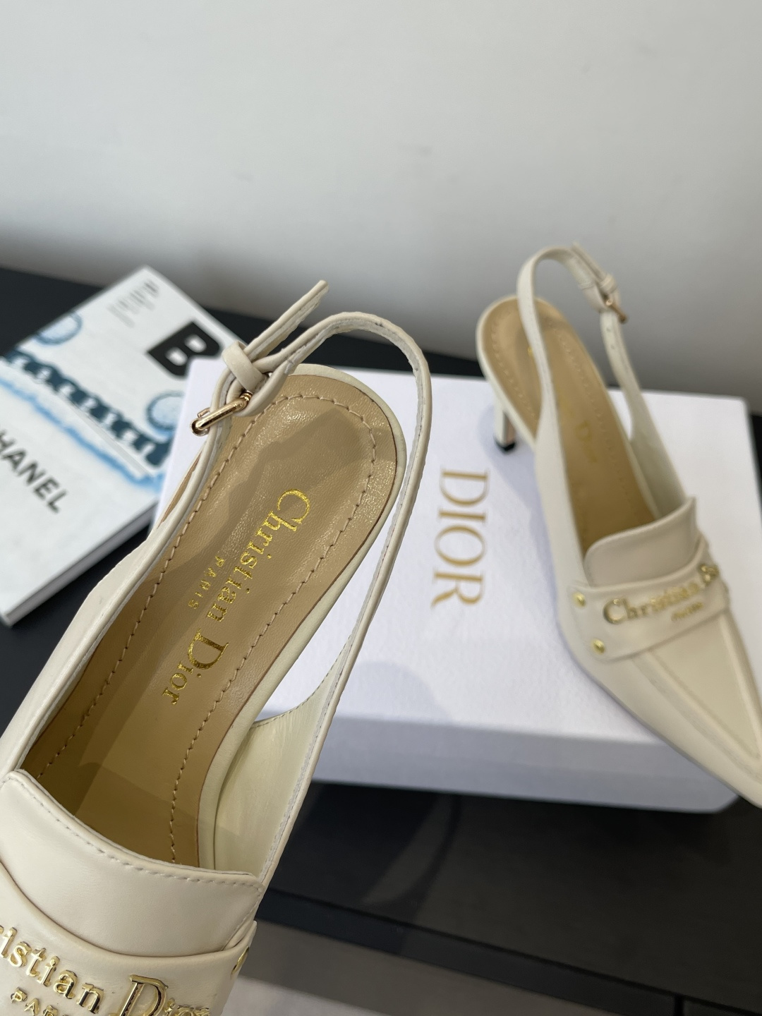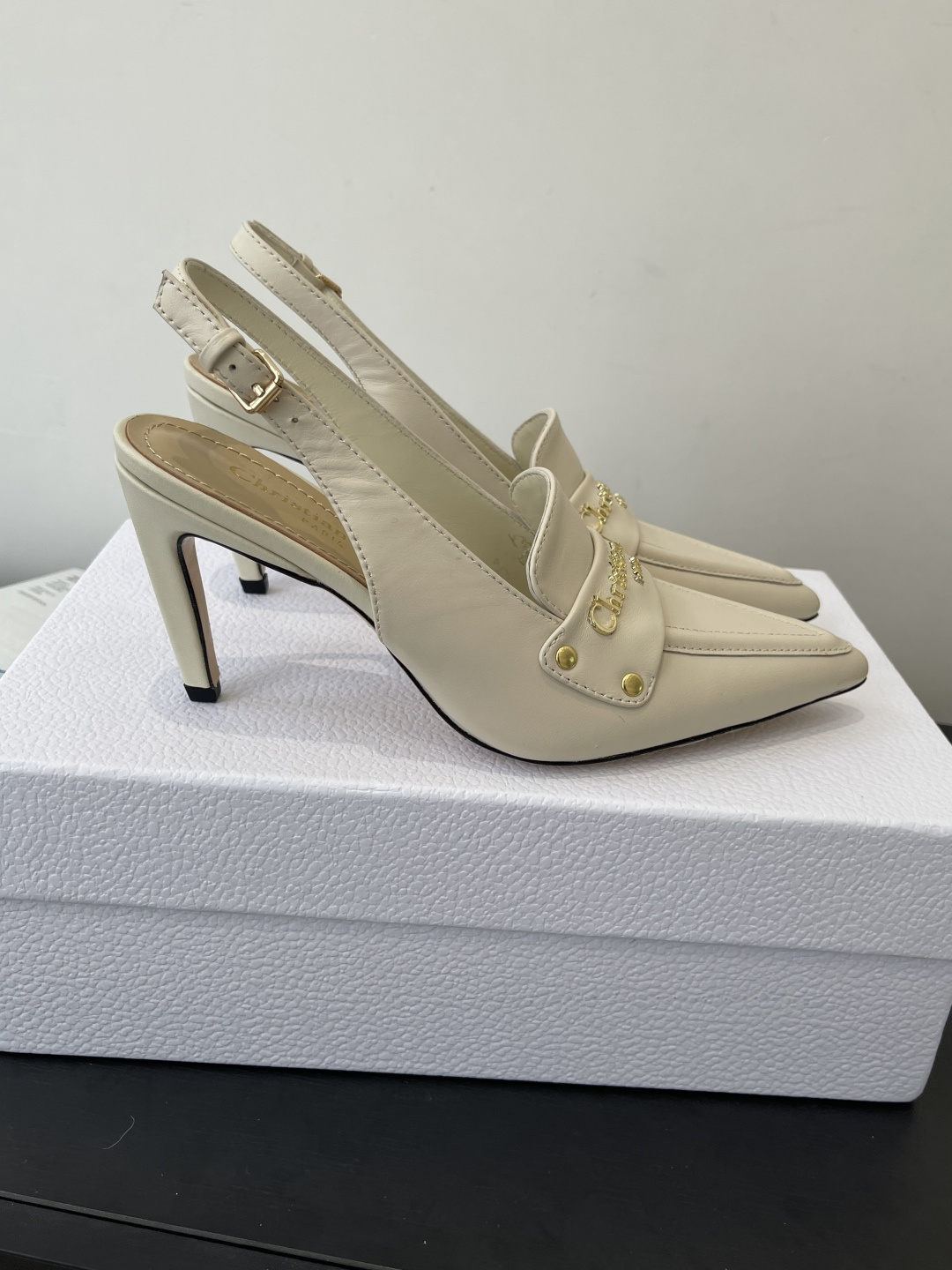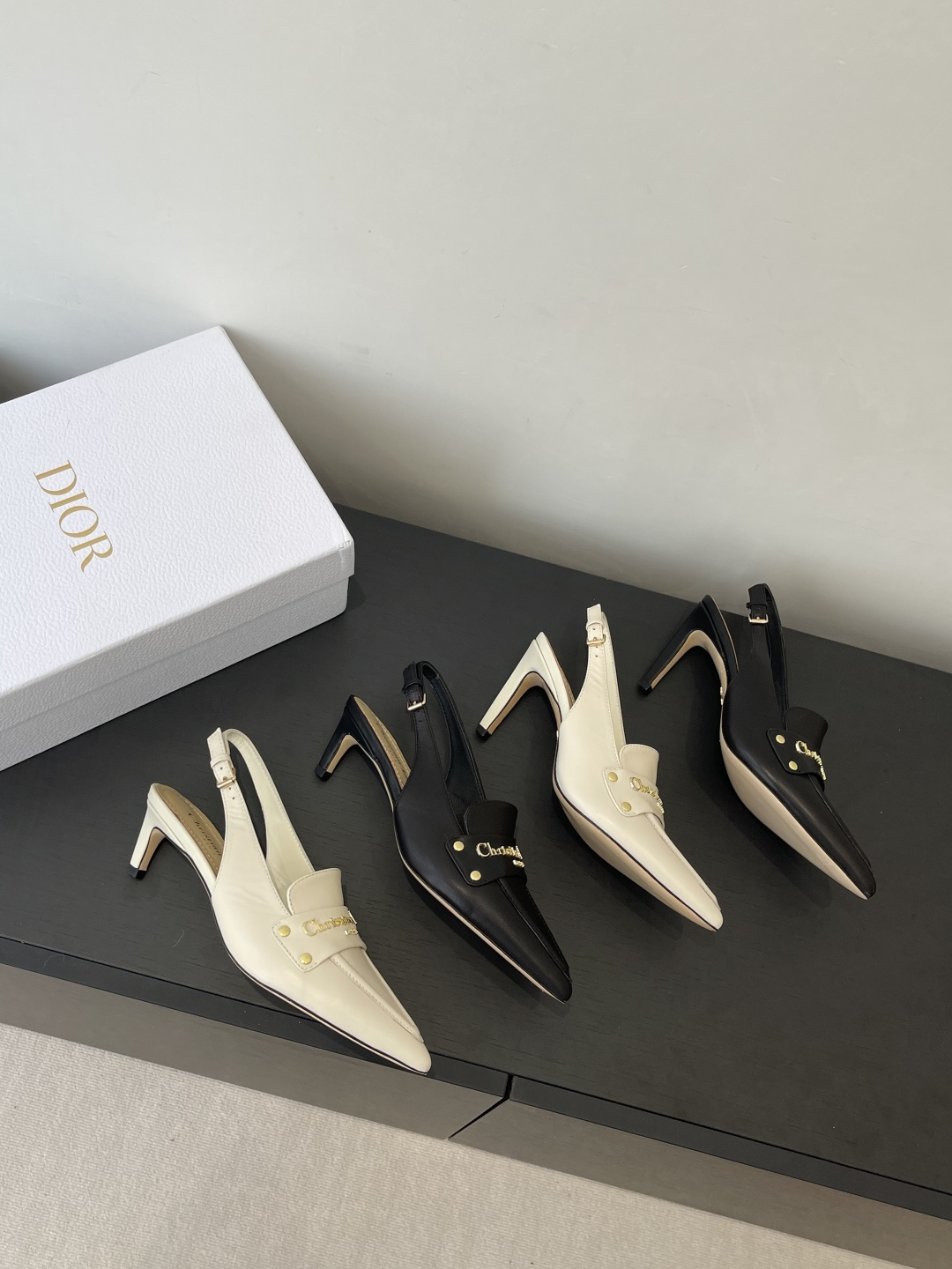 Dior CD 디올 각인 로고 슬링백 펌프스 힐 구두 신발