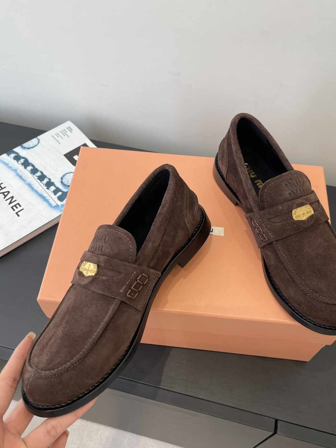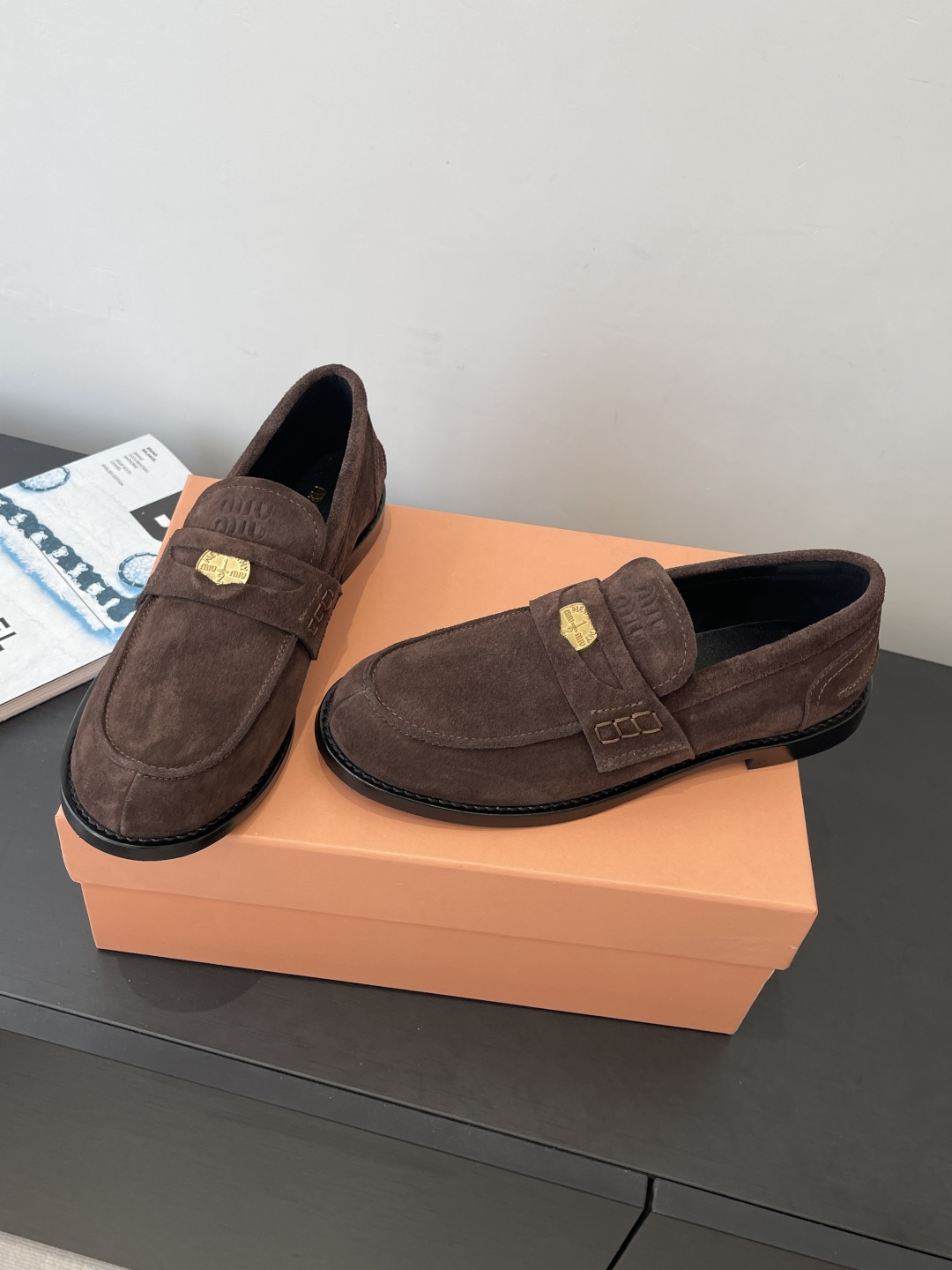 디자인: 요즘 가장 핫한 '미우미우 코인 로퍼' 최신상입니다. 스트랩 사이에 실제 행운의 동전과 로고 압인이 포인트로 들어가 클래식하면서도 위트 있는 감성을 더했습니다.