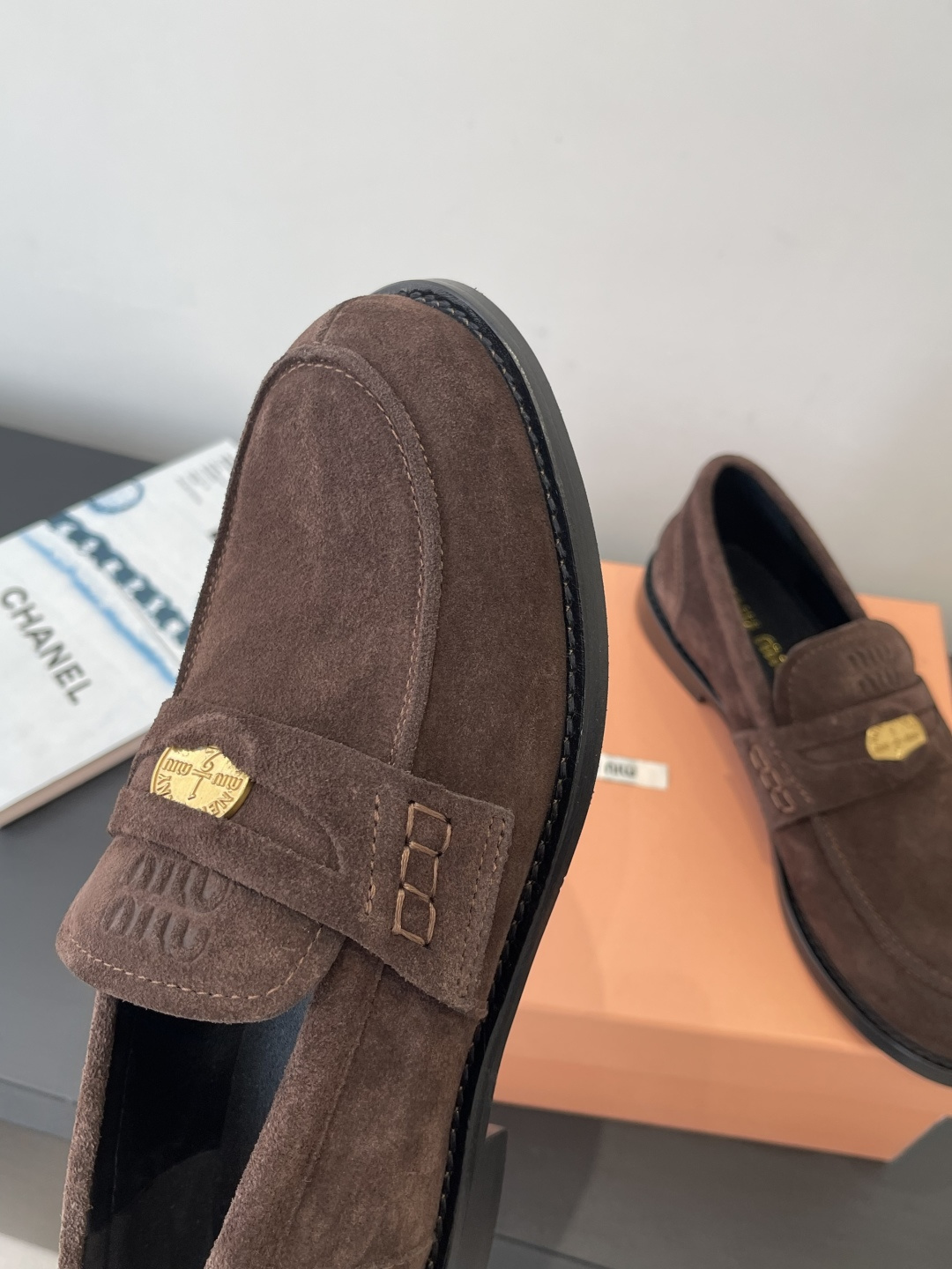 miumiu 미우미우 럭키 코인 레더 로퍼 구두 신발